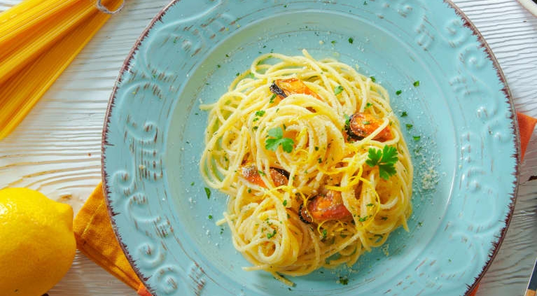 FRITTATA CON SPAGHETTI ALLE COZZE E LIMONE